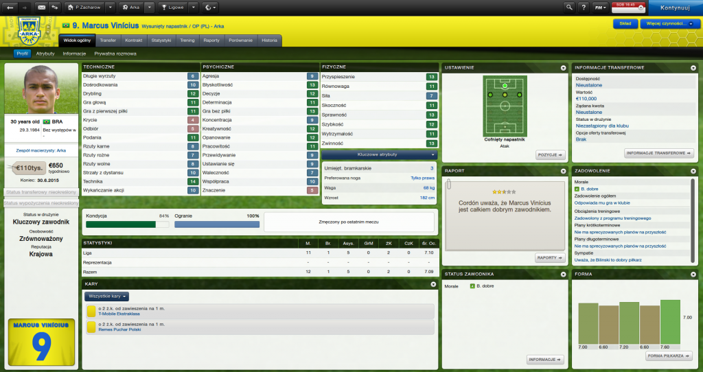 Co dalej? Najbliższy mecz zagramy z Widzewem Łódź - będzie to spotkanie 3 rundy Pucharu Polski. Następnie Cracovia Kraków (d), Legia Warszawa (w), Zagłębie Lubin (w) oraz ponownie Widzew Łódź (d) i zakończymy rundę jesienną. Plan minimum na ten okres to awans do kolejnej rundy w pucharze, a także dziesięć punktów ligowych (trzy zwycięstwa i remis wydają się być w naszym zasięgu). Powoli też myślę o sparingach w przerwie zimowej - trzeba koniecznie złapać właściwy rytm meczowym przed rundą wiosenną a także zadbać o kondycję - na koniec poprzedniego sezonu ten ostatni aspekt futbolowego rzemiosła leżał u nas i kwiczał.